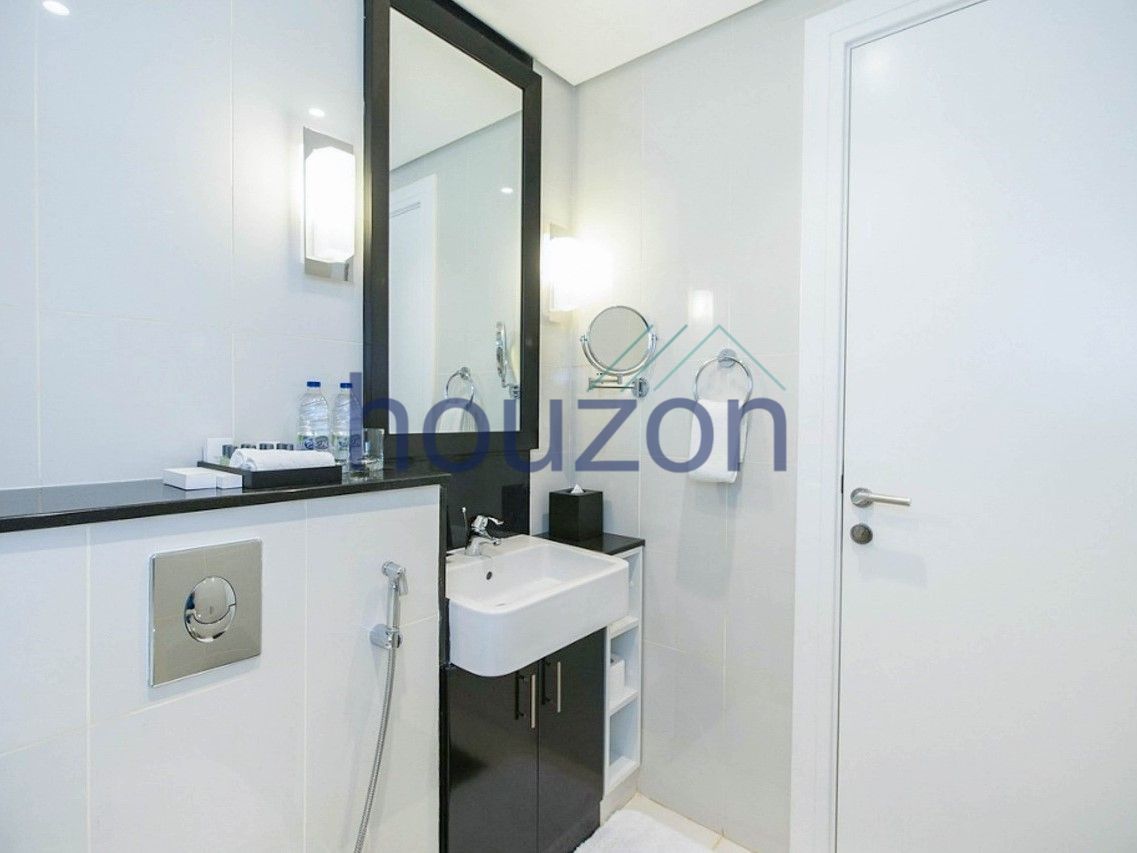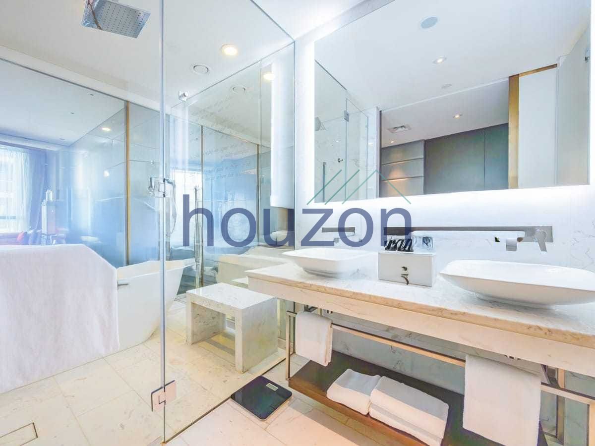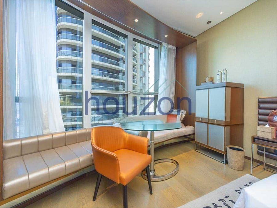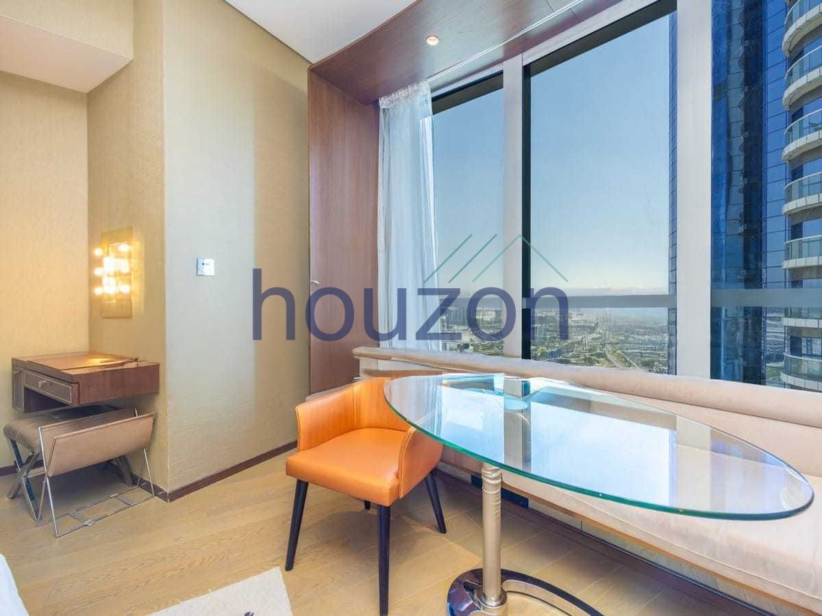 Houzon Real Estate is pleased to offer this elegant studio apartment within the iconic DAMAC Paramount Tower Hotel & Residences, ideally situated in the heart of Business Bay. Set on a high floor and positioned as a corner unit, the residence enjoys expansive views of the canal and the sea, delivering a lifestyle inspired by refined luxury and cinematic elegance.